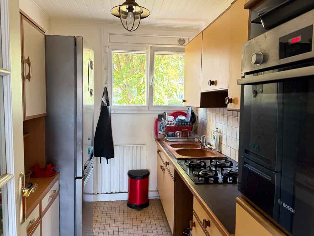 Bel appartement lumineux de 4 pièces (66,29 m²), SANS AUCUN TRAVAUX À PRÉVOIR. Dans une résidence calme et sécurisée avec espaces verts et à proximité de la gare RER (10min à pied), cet appartement traversant en rez-de-chaussée surélevé, se compose de : Entrée, salon/salle à manger de 25 m² exposé SUD (avec vue sur jardin, sans vis-à-vis), cuisine indépendante aménagée et équipée, deux chambres, salle de bains et w-c séparés. Une place de parking et au sous-sol une cave. Ses qualités : Son calme, sa clarté et son ensoleillement, un bon plan sans perte de place, de nombreux rangements, un double vitrage et sa proximité avec les moyens de transports. Prix de vente : 265 000 €. Bon choix pour un jeune couple avec enfant. Si vous voulez en savoir plus, vous pouvez contacter votre agence C MON APPART.